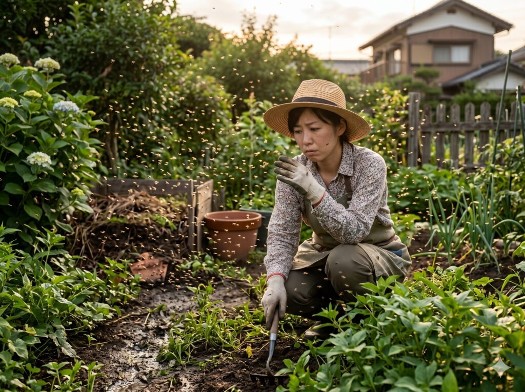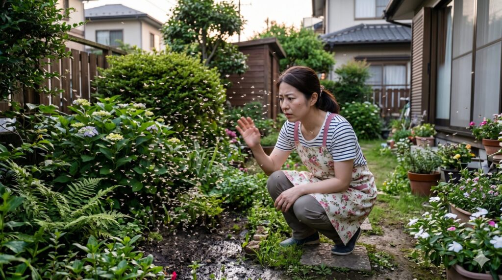 庭で「黒い小さい虫がたくさん飛ぶ」と感じたとき、