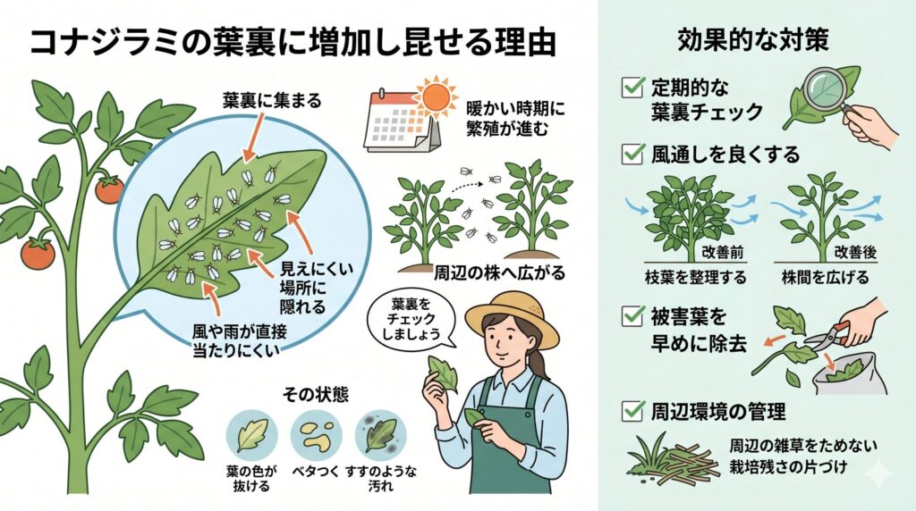 - コナジラミが葉裏に増える理由