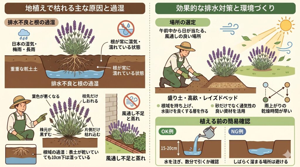 ラベンダーが地植えで枯れる主な原因と排水対策