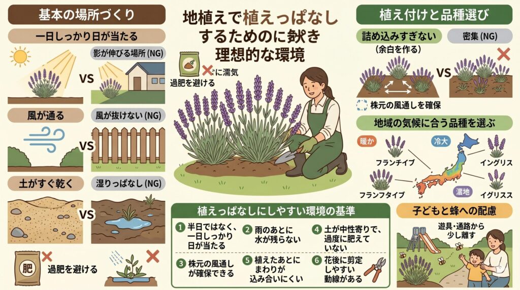 ラベンダーは植えてから立て直すより、植える前に失敗条件をつぶしておく方がうまくいきます。