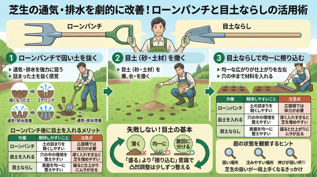 迷ったときほど、作業を増やしすぎず、今の芝に必要な一手から始めるのが近道です。