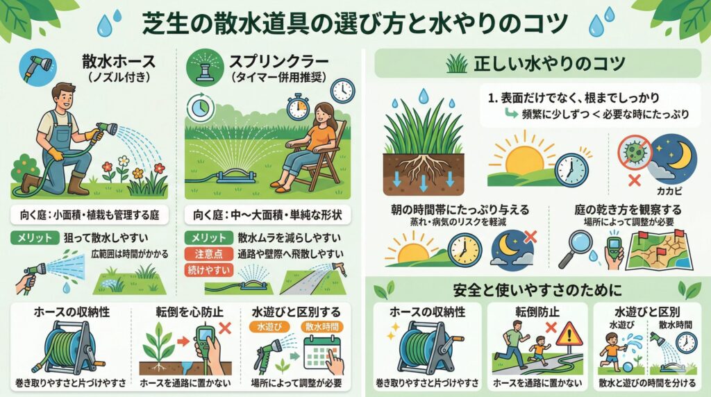 キワの処理ができなければ見た目は中途半端になりやすいですし、散水が大変すぎれば夏場に芝が弱りやすくなります。