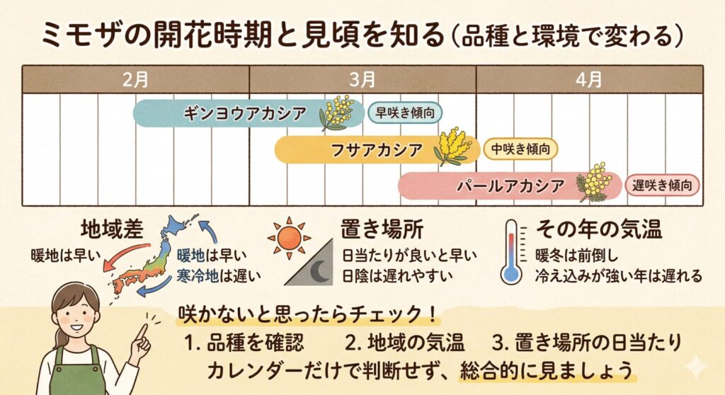 • ミモザが咲く時期と通常の開花期の違い