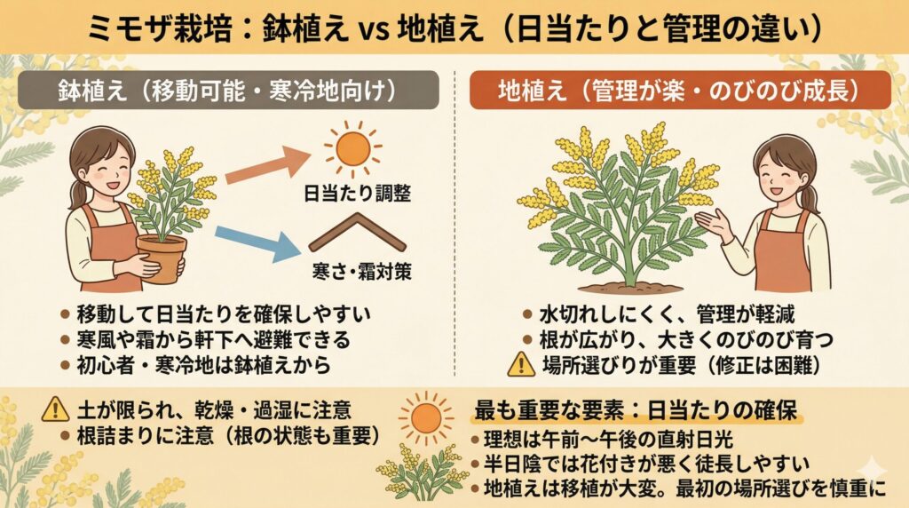 • 鉢植えと地植えの違いと日当たりの確保
