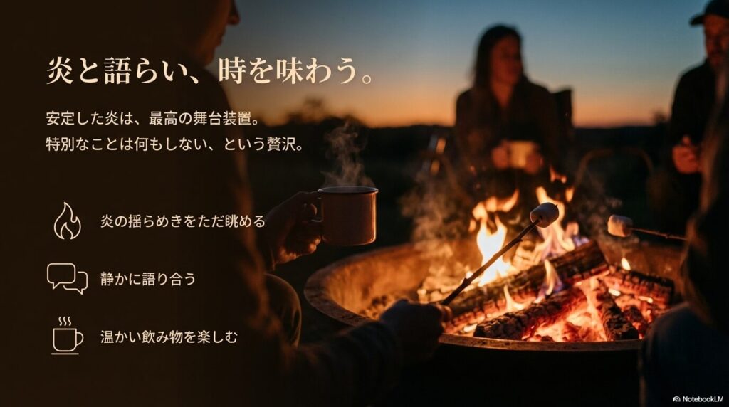- 焚き火を「眺めて楽しむ時間」として使いたい